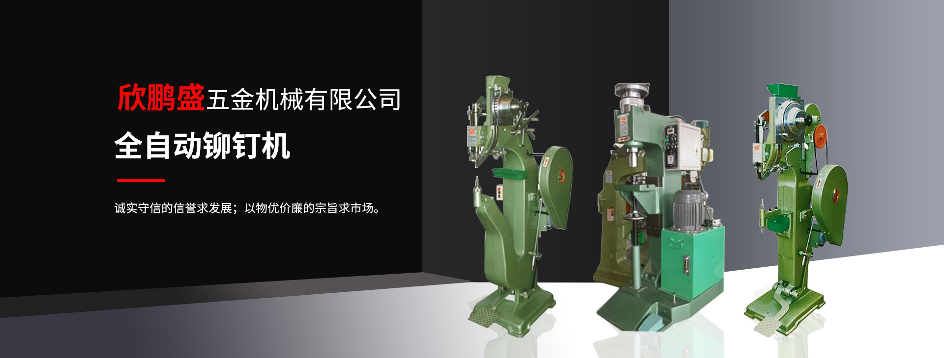 昆山欣鵬盛五金機(jī)械有限公司,專注制造:各種鉚釘機(jī)、雞眼機(jī)、上膠機(jī)、分條機(jī)、燙金烙印機(jī)、壓線機(jī)、折邊機(jī)、切帶機(jī)、沖孔機(jī)、裁剪機(jī)、抽條機(jī)、油壓裁斷機(jī)、數(shù)控轉(zhuǎn)塔沖床等。